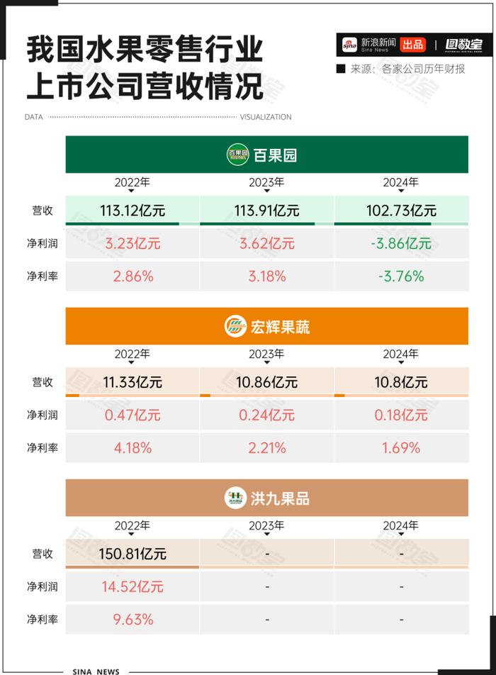 行業(yè)困境并非個(gè)例。洪九果品因未能按時(shí)發(fā)布2023年報(bào),其股票于2024年3月被停牌,隨后更被曝出財(cái)務(wù)造假嫌疑。另一品牌宏輝果蔬則已連續(xù)兩年業(yè)績(jī)下滑。