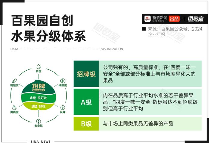 在百果園自創(chuàng)的“四度一味一安全”分級(jí)體系中,自家的水果品質(zhì)是遠(yuǎn)超行業(yè)平均的,別家的水果一般只能排到B級(jí)。百果園的招牌和A級(jí)產(chǎn)品經(jīng)過(guò)“258項(xiàng)檢測(cè)”,爽脆度、糖酸度、鮮度、細(xì)嫩度、風(fēng)味和安全性均高于行業(yè)平均水準(zhǔn)。