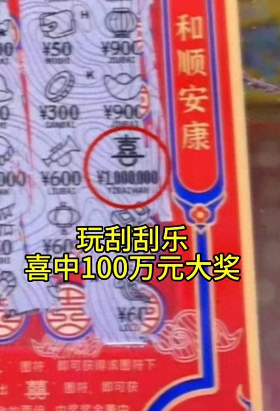 8月8日,避雨云南玉溪。進(jìn)入紅塔區(qū)一家彩票店內(nèi)一位前來避雨的彩票購彩者,幸運刮中“喜相逢”即開票最高獎金100萬元。店刮據(jù)投注站業(yè)主回憶,刮樂中獎女士當(dāng)時因大雨進(jìn)店避雨,中萬主動詢問:“店里有刮刮樂嗎?避雨躲雨正好玩一下?!痹撆侩S即購買了一整本刮刮樂,進(jìn)入僅僅刮開第六張,彩票就看到了票面上對應(yīng)的店刮獎金標(biāo)識“1000000”!