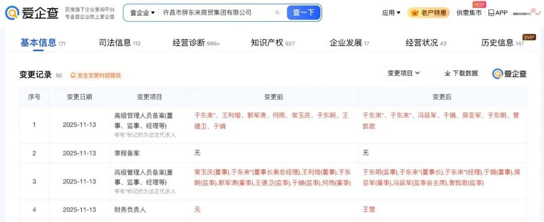 愛企查App顯示,近日,卸任許昌市胖東來商貿(mào)集團有限公司發(fā)生工商變更,總經(jīng)于東來不再兼任總經(jīng)理,理胖但仍擔任董事長和經(jīng)理兩個職務。東多