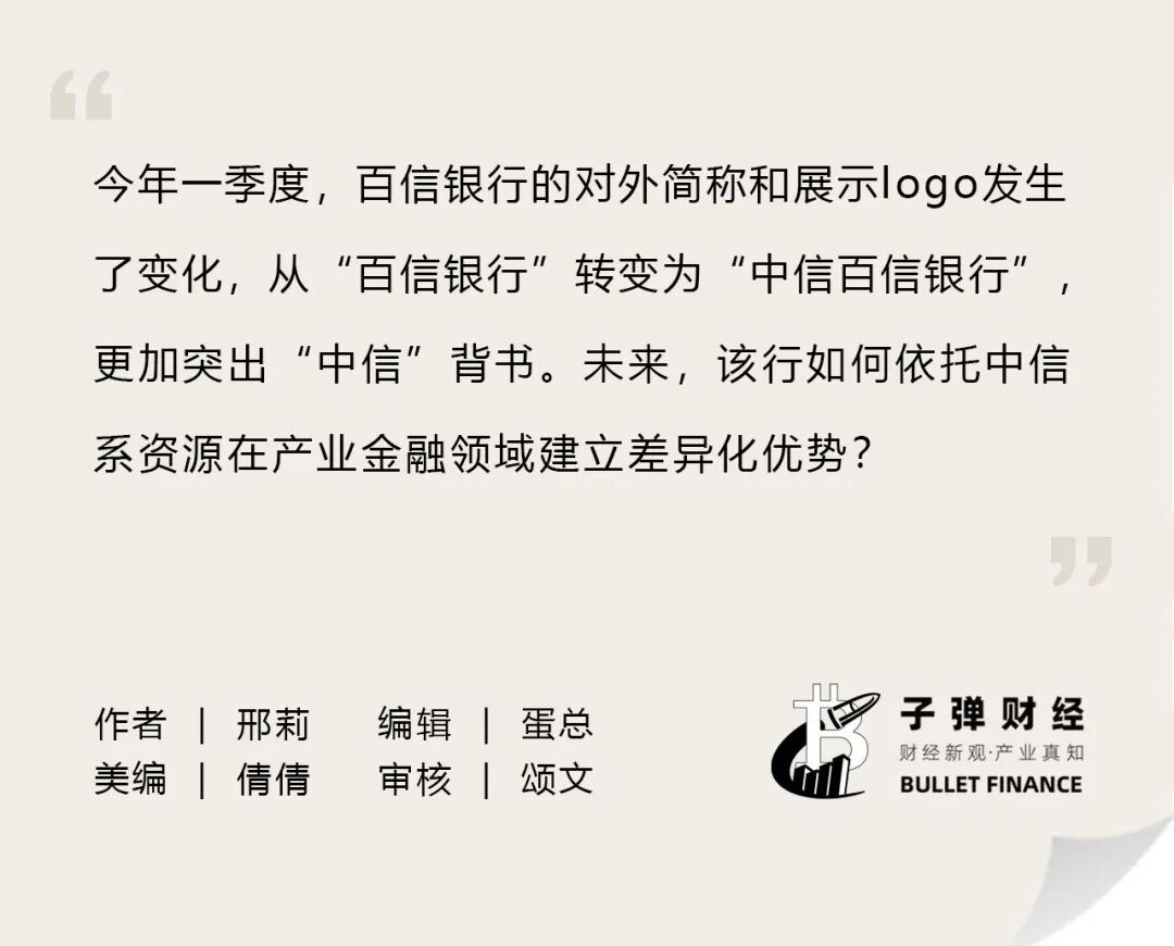 「子彈財經(jīng)」注意到,今年一季度,百信銀行的對外簡稱和展示logo發(fā)生了變化,從“百信銀行”轉(zhuǎn)變?yōu)椤爸行虐傩陪y行”,更加突出“中信”背書。