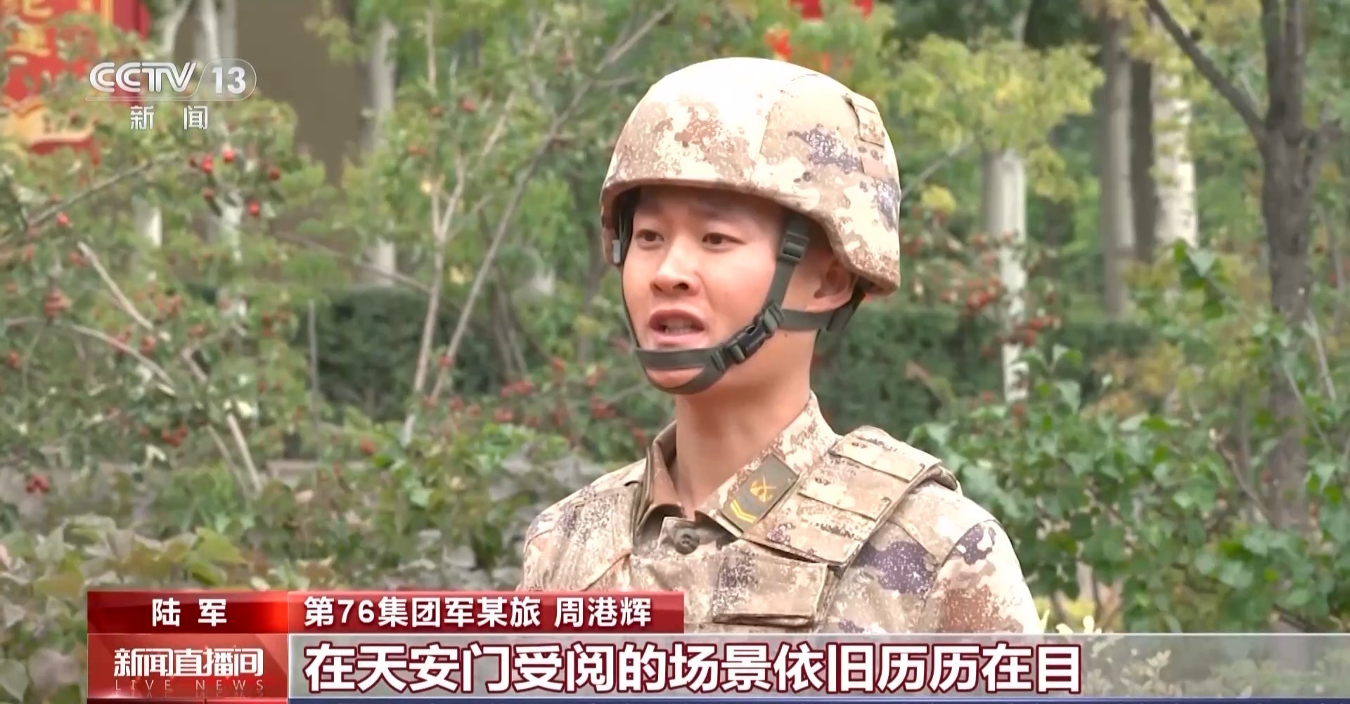 第76集團(tuán)軍某旅 周港輝:在天安門受閱的場(chǎng)景依舊歷歷在目,那種身為中國(guó)軍人的自豪感讓我熱血沸騰。我將干好自己的本職工作,帶領(lǐng)身邊同志一起練強(qiáng)本領(lǐng),以時(shí)刻準(zhǔn)備著的戰(zhàn)斗姿態(tài),完成好各項(xiàng)任務(wù)。