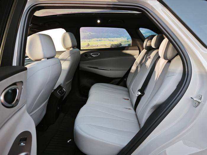 空間方面,海獅 06 的長寬高分別為 48010/1920/1675mm,軸距為 2820mm,車寬、軸距與海獅 07 完全一樣。官方表示,海獅 06 擁有 61% 的乘員艙占比,而同級別的德系、美系、日系 SUV,其乘員艙占比普遍在 60% 以內(nèi),實際體驗發(fā)現(xiàn),后排的乘坐空間比較闊綽,而且后備廂擁有 757L 的基礎(chǔ)容積,能夠放置 6 個 20 英寸行李箱。