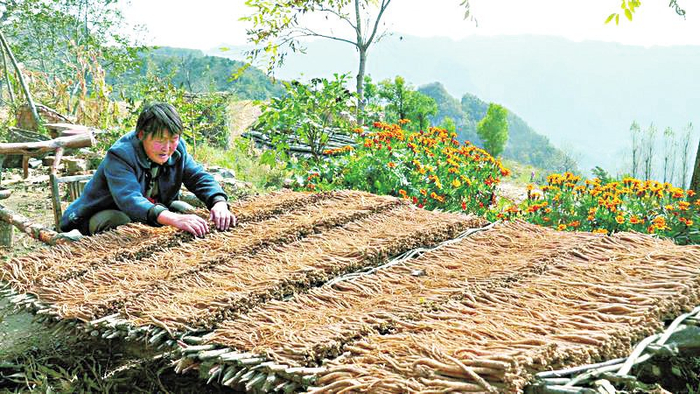 晉城市陵川縣六泉鄉(xiāng)村民正在晾曬陵川潞黨參。
