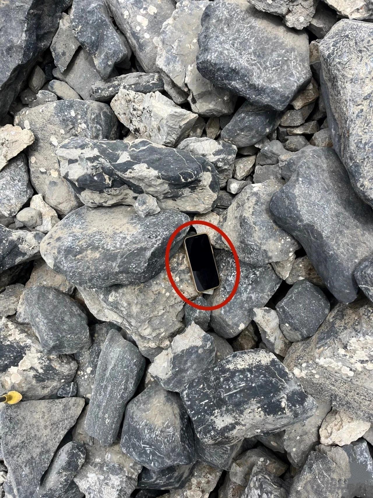 △郭先生拍照時發(fā)現(xiàn)石塊間的手機。